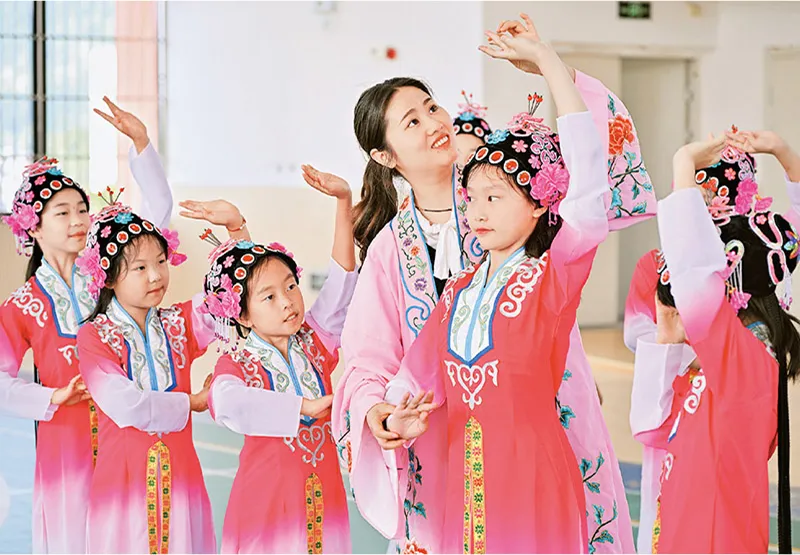 戏曲是中华文化的瑰宝。守护好、传承好、发展好这一瑰宝,是广大戏曲艺术工作者的重要使命。图为2025年5月8日,在四川省眉山市仁寿县鳌峰小学校,戏曲教师正在指导学生练习戏曲。 人民图片供图