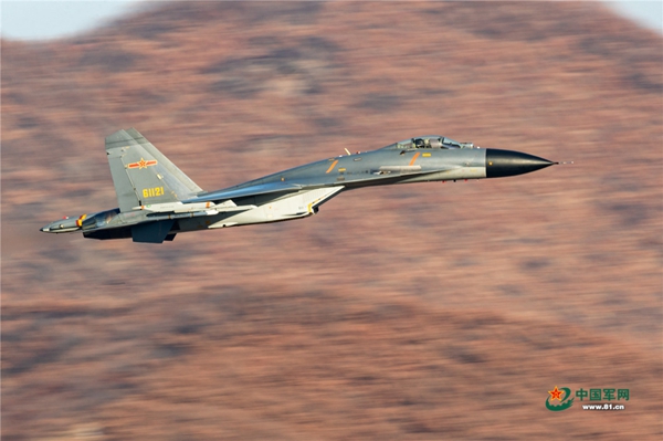 战机高速通过山谷。杨盼 摄