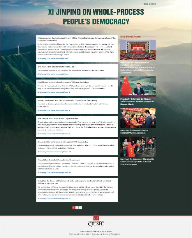 本网讯 全过程人民民主是社会主义民主政治的本质属性,是最广泛、最真实、最管用的民主。在2024年全国两会即将召开之际,求是英文网策划推出“习近平总书记关于全过程人民民主重要论述”专题,集纳展示了《习近平谈治国理政》第一至四卷英文版、 《求是》杂志英文版刊发的习近平总书记关于全过程人民民主的相关重要文章,深入阐释了人民代表大会制度和中国共产党领导的多党合作和政治协商制度的历史贡献和独特优势。