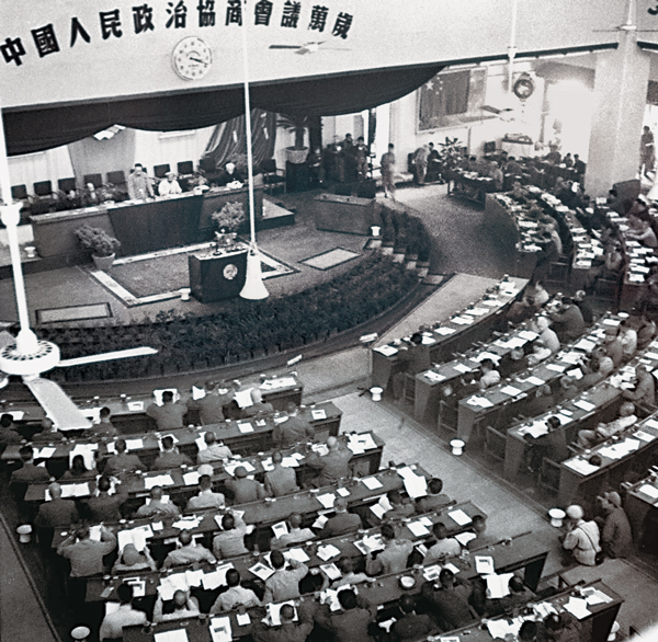 1949年9月21日晚7点,中华民族迎来了一个伟大时刻。肩负协商创建新中国历史重任的中国人民政治协商会议第一届全体会议在北平中南海怀仁堂隆重开幕。一个旧的时代被历史车轮碾碎,中国共产党团结带领各民主党派和全国各族人民,开启了中国历史的新纪元。 新华社发