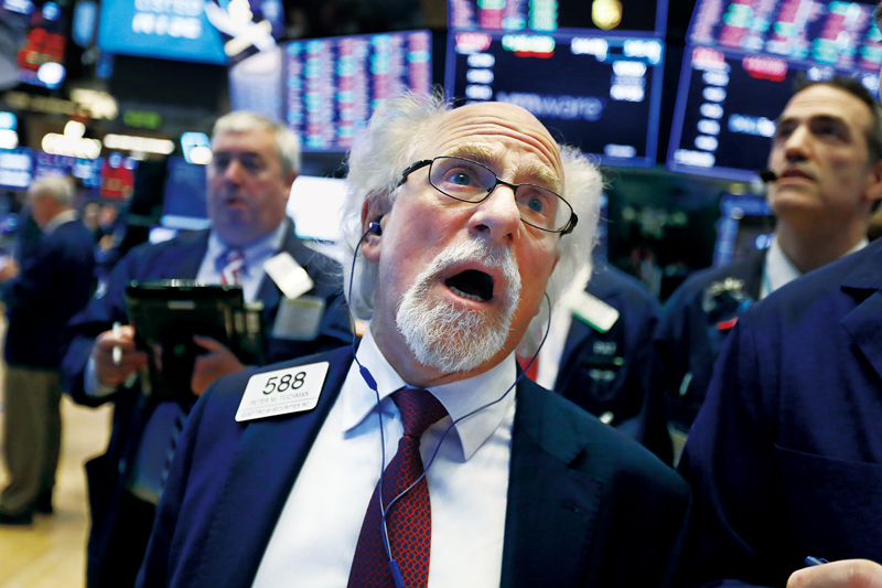 2018年,全球股市普遍出现大幅震荡。美国纽约股市道琼斯、标准普尔和纳斯达克三大股指全年分别下跌5.63%、6.24%和3.88%,创2008年国际金融危机以来年度最差表现。图为2019年1月14日,交易员在美国纽约证券交易所工作。 新华社/美联