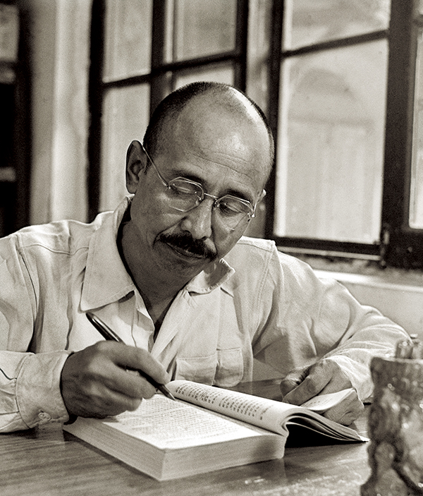 作家柳青在学习,他的主要作品有《种谷记》、《铜墙铁壁》、《创业史》。 新华社照片