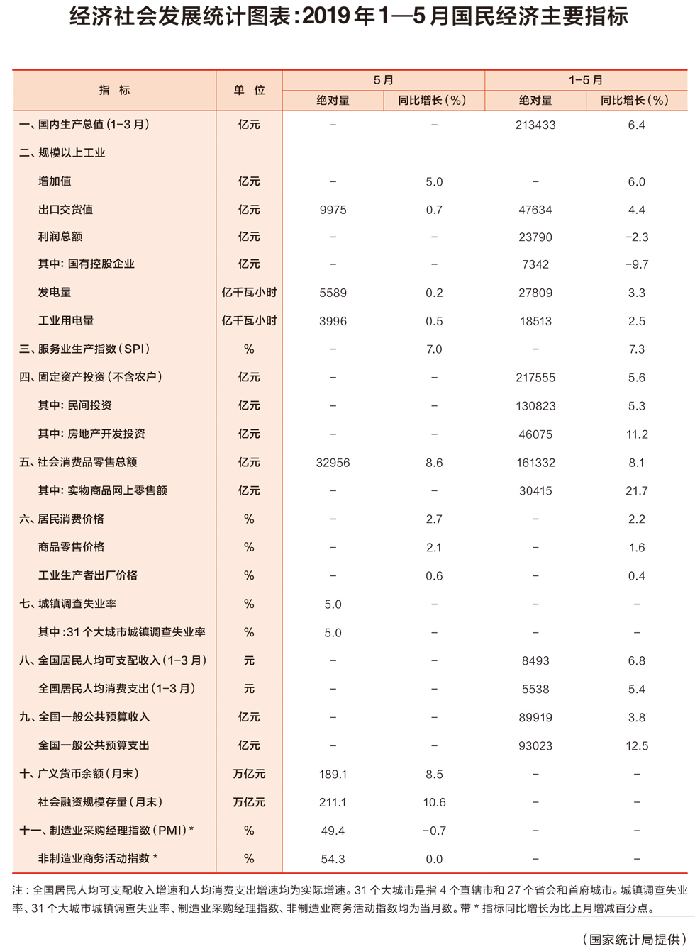 经济社会发展统计图表:2019年1—5月国民经济主要指标