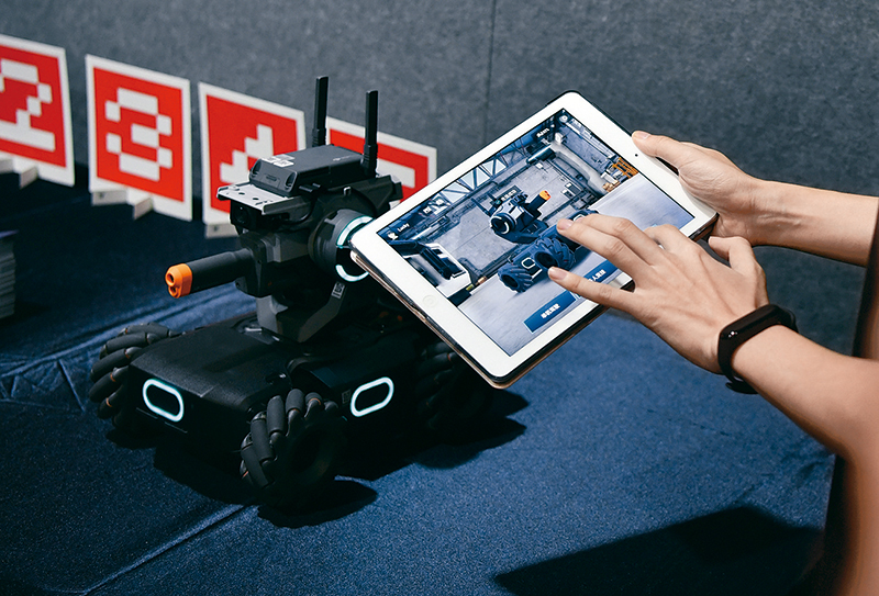 中国经济转型升级稳步推进,产业发展迈向中高端。图为2019年6月12日,大疆创新在北京发布其首款教育机器人机甲大师RoboMaster S1,工作人员正在演示教育机器人。 新华社记者 王庆钦/摄