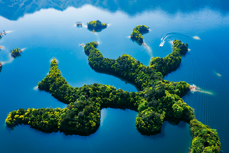 污染防治七大标志性战役全面打响,人民群众享受到更多的蓝天白云、青山绿水。在第一轮中央环境保护督察后,安徽省委、省政府把生态环境保护工作摆在突出位置,切实加强整改,太平湖生态环境持续改善。图为2019年4月17日拍摄的黄山太平湖水上风光。 人民图片 徐程/摄