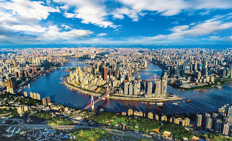 重庆作为我国中西部地区的直辖市,正紧紧围绕把习近平总书记殷殷嘱托全面落实在重庆大地上这条主线,贯彻落实中央关于推动成渝地区双城经济圈建设的重大决策部署,在主动服务全国大局中推动自身发展,努力做到既为一域争光,又为全局添彩。图为重庆“两江四岸”核心区鸟瞰。 重庆日报供图