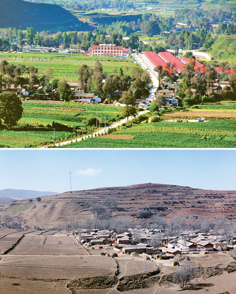 元古堆位于甘肃省定西市渭源县田家河乡,地处海拔2400米的山区,总面积12.4平方公里。这里高寒阴湿,沟壑纵横,是著名的深度贫困地区。脱贫攻坚后,元古堆发生了翻天覆地的变化,荣列甘肃省十大美丽乡村。上图为今日的元古堆。下图为元古堆旧貌。 元古堆村委会供图