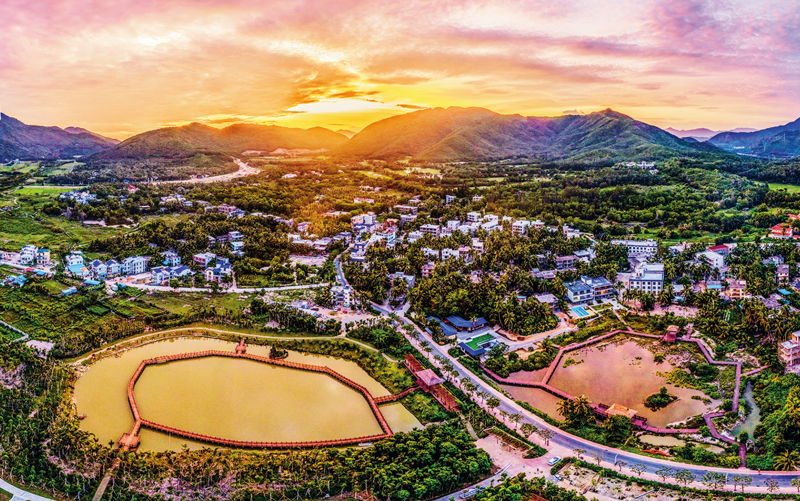 博后村是海南黎族聚居村庄,也是三亚市革命老区。2013年4月9日,习近平总书记到博后村考察时提出“小康不小康,关键看老乡”,这句话从此深深扎根于3600多名博后村村民心底,也鼓舞全国亿万老乡奋力奔小康。近年来,博后村先后被评为海南五星级美丽乡村、海南省卫生村、海南五椰级乡村旅游点、全国乡村旅游重点村,2019年村民人均收入达到24520元。图为博后村俯瞰图。 三亚市吉阳区委宣传部供图 孟志军/摄