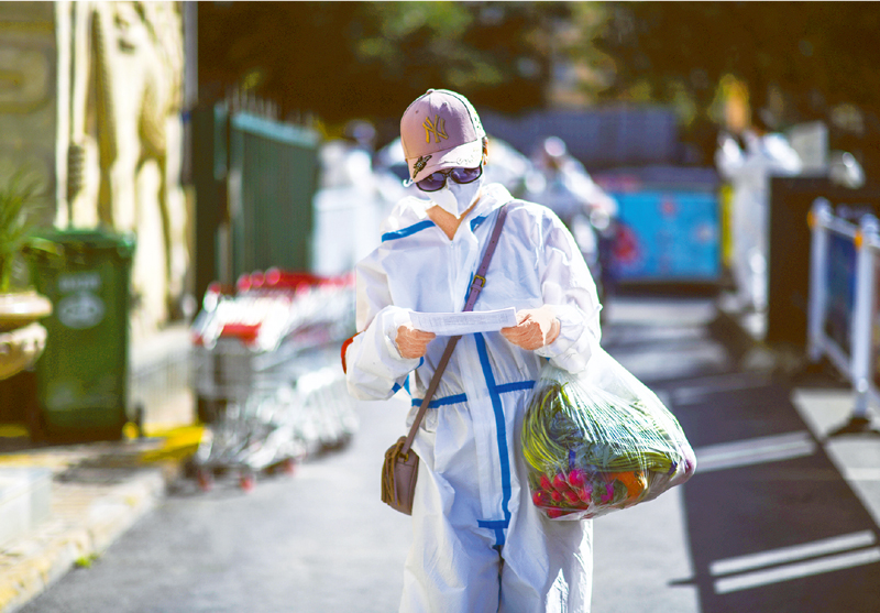 在小区战“疫”中,日常生活必需品的购买是居民最关心的问题之一。为了进一步服务好小区居民,乌鲁木齐市天山区中环路北社区党委成立空中花园小区临时党小组,带领社区工作人员和志愿者全力为居民提供生活服务保障。图为2020年8月15日,临时党小组成员准备将蔬菜送往居民家里。 新华社记者 赵戈/摄