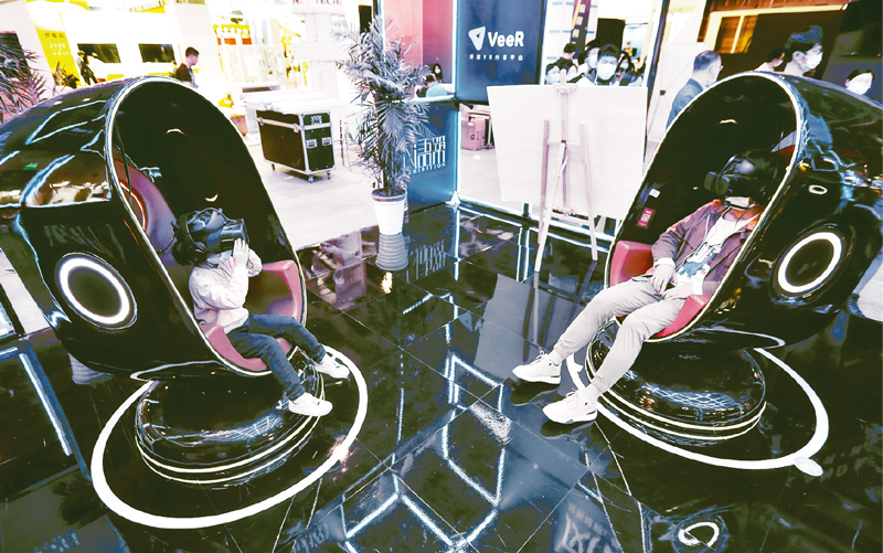 江西坚持以供给侧结构性改革为主线,扭住创新这个“牛鼻子”,做强产业这个“主支撑”,在扩量提质中加快新旧动能转换。作为2020世界VR产业大会的一项重要内容——2020VR/AR产品和应用展览会在南昌举行。图为2020年10月20日,江西南昌绿地国际博览中心,市民在体验VR观影。 人民图片 徐铮/摄