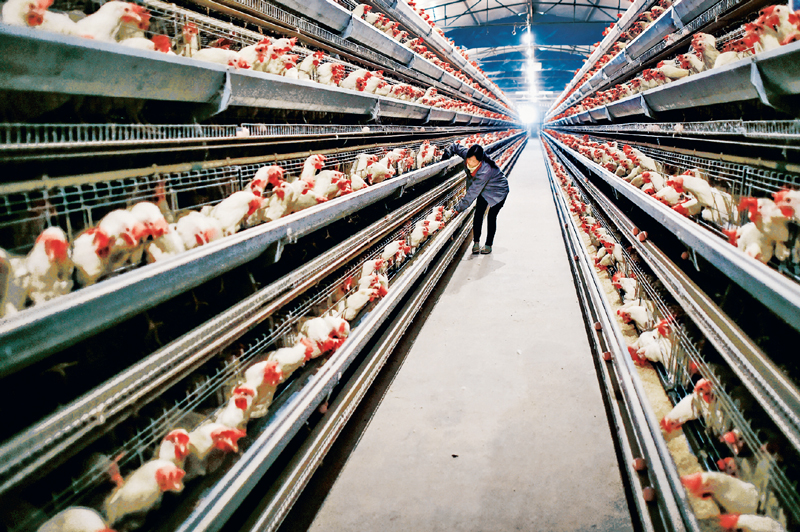 脱贫攻坚,产业是基础,产业兴旺,才是解决农村一切问题的前提。通过因地制宜发展特色产业,贵州毕节市七星关区五里坪村农民逐渐脱贫走上了小康路。图为当地农户在一个属于精准扶贫项目的养鸡场内工作。 新华社记者 欧东衢/摄