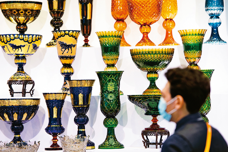 经过3年发展,中国国际进口博览会让展品变商品、让展商变投资商,交流创意和理念,联通中国和世界,成为国际采购、投资促进、人文交流、开放合作的四大平台,成为全球共享的国际公共产品。图为2020年11月7日,第三届进博会消费品展区,波斯文化馆展台展示的各式伊朗传统工艺品。 中新社记者 侯宇/摄