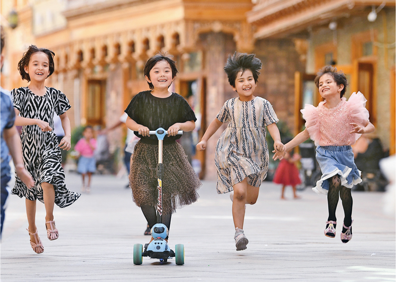 历经4年改造,新疆和田市团城的鸽子巷由曾经脏乱差的棚户区变身为古城新名片。图为孩子们在鸽子巷玩耍(2020年5月27日摄)。 新华社记者 沙达提/摄