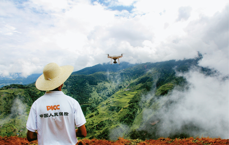 图为人保财险四川分公司农险工作人员运用无人机查勘,快速精准定损理赔,助力农民抵抗风险、减少损失。 中国人民保险集团供图