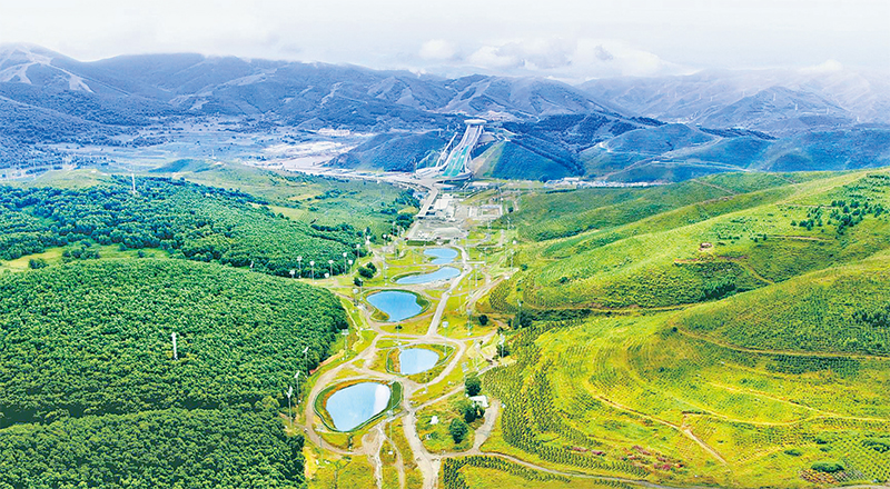 河北省崇礼冬奥核心区森林覆盖率超过80%,“雪如意”、“冰玉环”等场馆设施被茂密的林海环绕。图为河北省张家口市崇礼冬奥核心区航拍。 崇礼区林草局供图