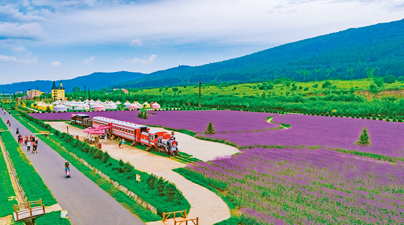 近年来,伊春市大力发展森林生态旅游、中药材种植等林下经济,推动产业绿色转型。朗乡花海是伊春森工朗乡林业局公司利用原来22万平方米的贮木场打造的重点森林生态旅游项目,共栽植金鱼草、鸡冠花、孔雀草、千屈菜、雪菊、草乌、藿香、金莲花等观赏、药用花卉近千万株,集观赏性、体验性、药用性、经济性为一体。图为朗乡花海。 黑龙江日报供图 杨刚/摄