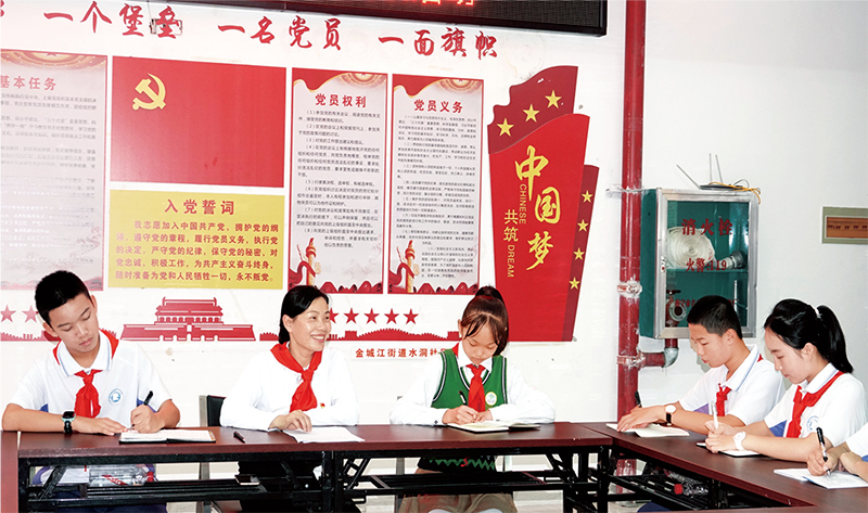 2022年11月11日,在广西河池市金城江区水洞社区,党的二十大代表结合自己的参会经历,向少先队员代表宣讲党的二十大精神,引导孩子们听党话、跟党走,争做新时代好队员。 广西日报供图 高东风/摄