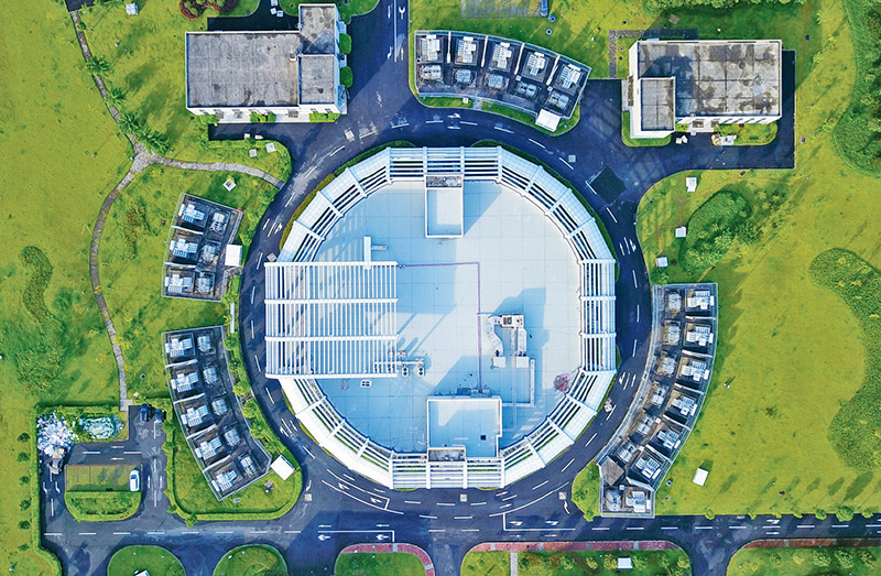 党的二十大报告强调,“加快实施创新驱动发展战略”,“加快实现高水平科技自立自强”。中国散裂中子源在基础研究上矢志不渝、在辐射带动上勇于担当,不断支撑我国科技前沿研究和基础研究,促进创新型国家建设。图为位于广东东莞松山湖的中国散裂中子源。 新华社记者 刘大伟/摄