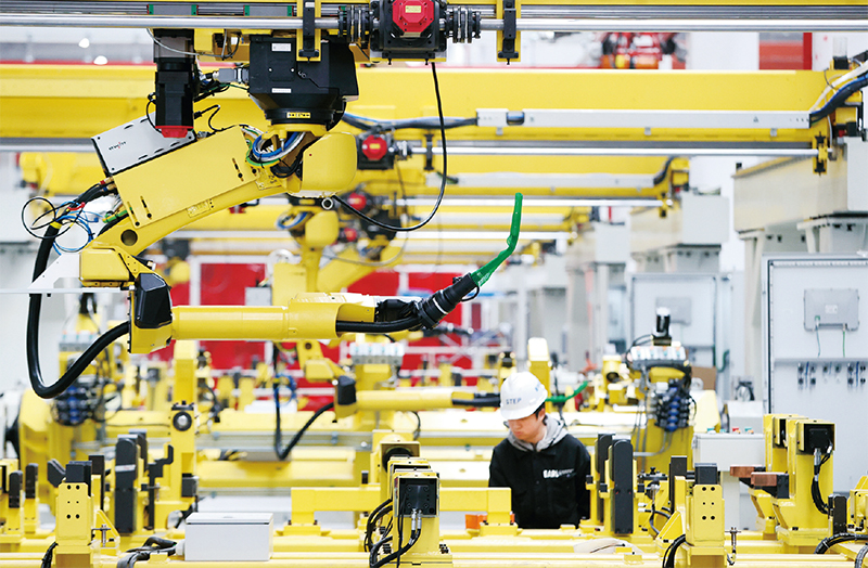 我国着力实施创新驱动发展战略,产业技术创新水平持续提升。图为2023年2月12日,在浙江省湖州市德清县一家企业车间里,工人在调试智能化生产线。 新华社发 谢尚国/摄