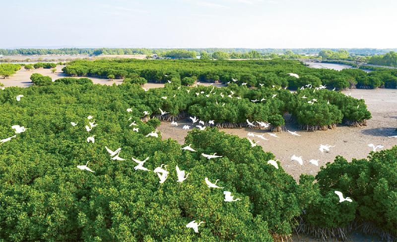 广东湛江红树林国家级自然保护区内红树林郁郁葱葱,白鹭翔集。图为保护区一景。 湛江市委宣传部供图 彭镇强/摄