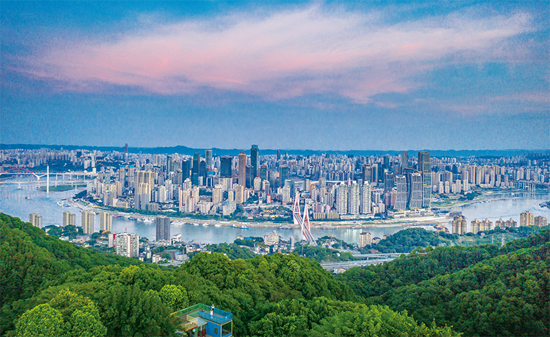 重庆牢牢把握高质量发展这个首要任务和构建新发展格局这个战略任务,充分发挥区位优势、产业优势、生态优势、体制优势,努力打造西部地区高质量发展排头兵。图为重庆中心城区鸟瞰图。 重庆市委宣传部供图 龙帆/摄