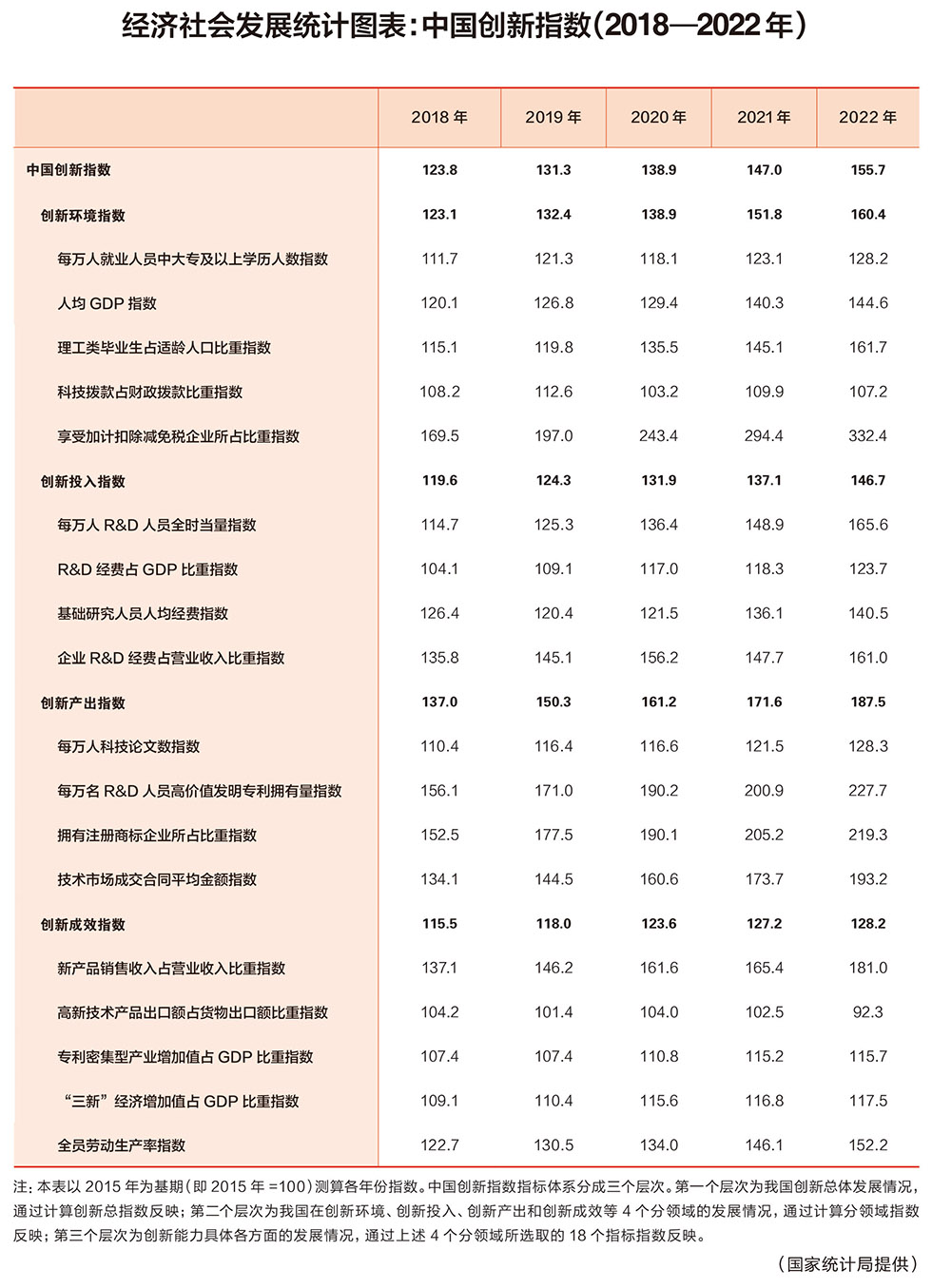经济社会发展统计图表:中国创新指数(2018—2022年)