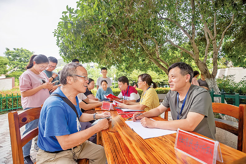 2023年6月,浙江省杭州市淳安县广泛开展“人大代表进基层了解社情民意”活动,让人大代表面对面倾听群众对社会治理、民生保障、文化活动等方面的意见和建议,协调解决他们在生产生活中的实际困难。图为6月5日,人大代表在淳安县千岛湖镇新北社区认真听取群众的意见和建议。 人民图片 谢航凯/摄