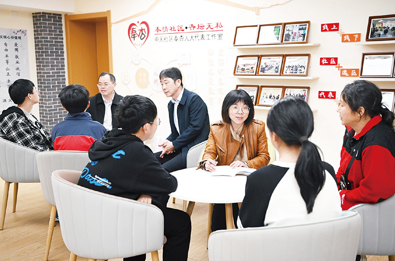 2023年4月7日,江苏省人大代表在泰州市姜堰区罗塘街道中天社区奉杏人大代表工作室,面向社区家庭开展教育服务公益行活动。 江苏省人大供图