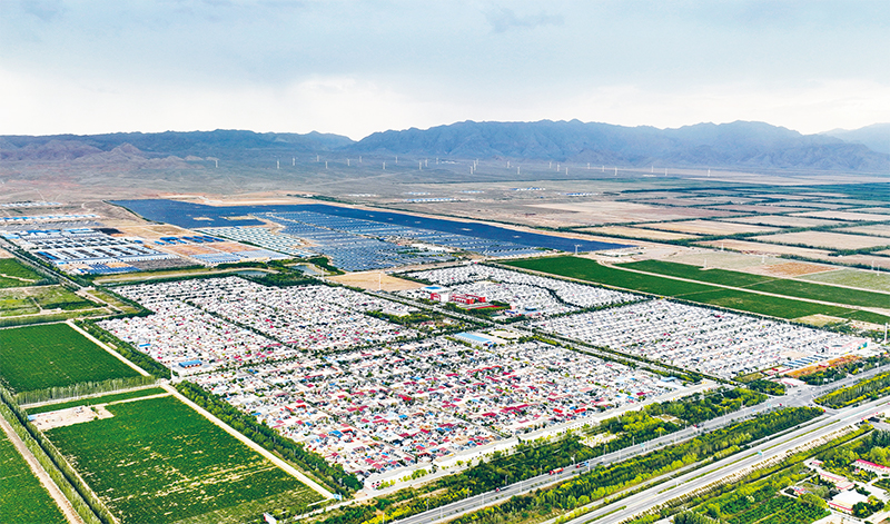 贺兰山东麓是戈壁荒滩,且是风的走廊。20世纪90年代,宁夏南部山区西吉、海原两县的百姓吊庄移民到银川西南一带的玉泉营和玉海经济开发区。20多年后,这里崛起一个震惊世界的小镇——闽宁镇!