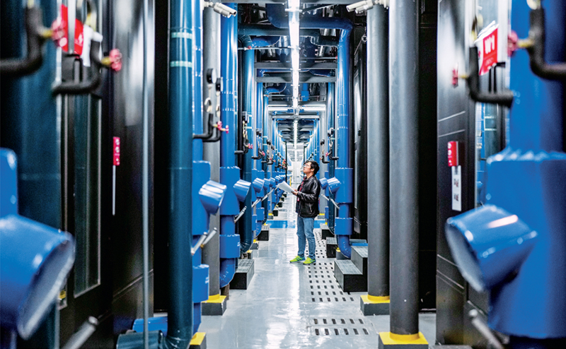 近年来,国家“东数西算”工程全面启动,贵州是全国八个一体化算力网络国家枢纽节点之一。图为2023年5月23日,工作人员在中国联通贵安数据中心对微模块机房运行状态进行巡检。 新华社记者 陶亮/摄