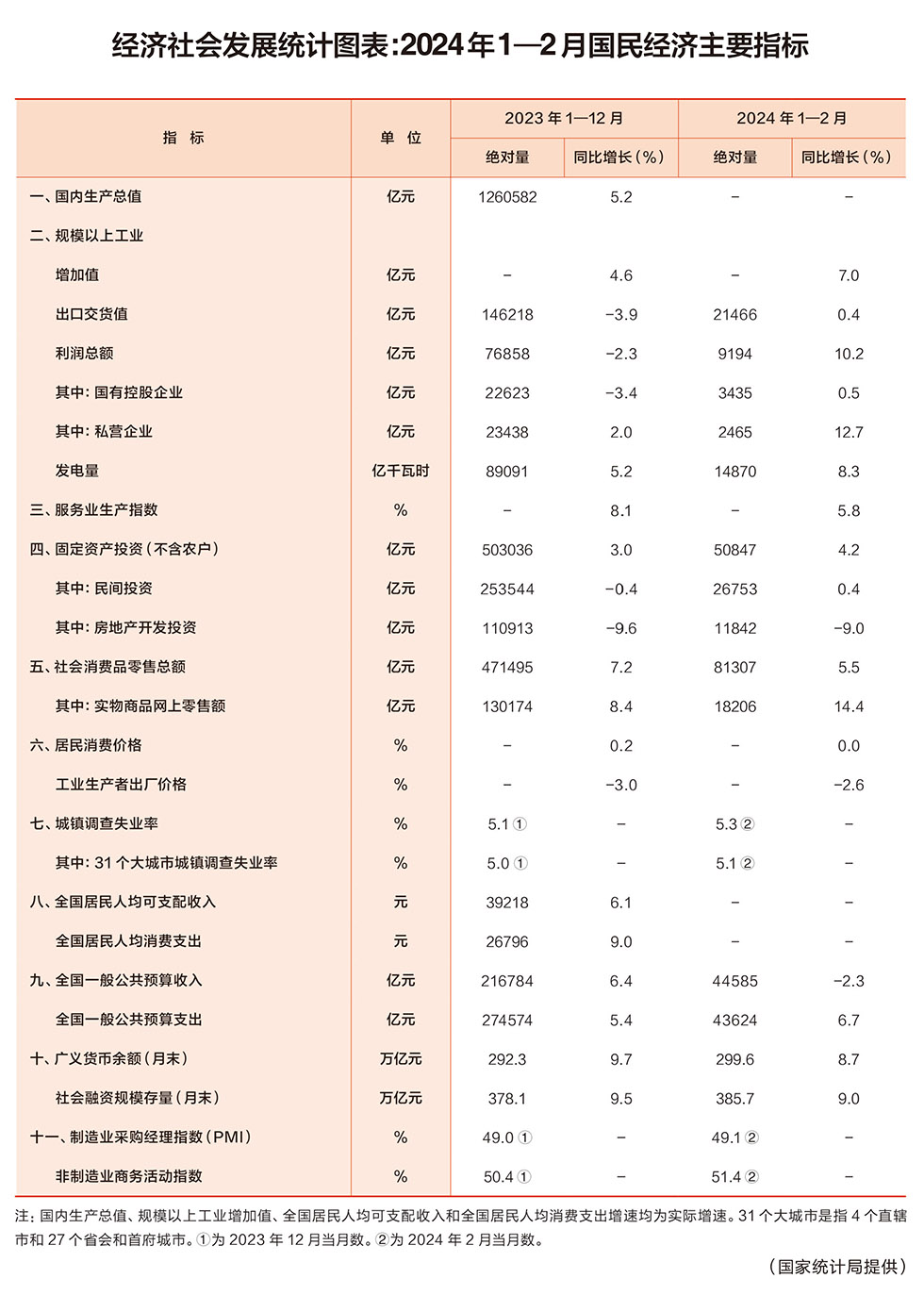 经济社会发展统计图表:2024年1—2月国民经济主要指标