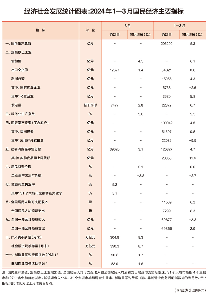 经济社会发展统计图表:2024年1—3月国民经济主要指标