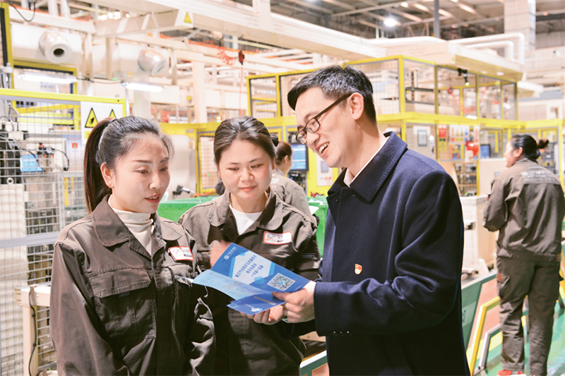 社保公共服务要突出精细化、精准化宣传,助推惠民惠企政策高效落实。图为2023年3月12日,重庆市巴南区社保中心工作人员深入企业宣传社保政策。 中国社会保障杂志社供图