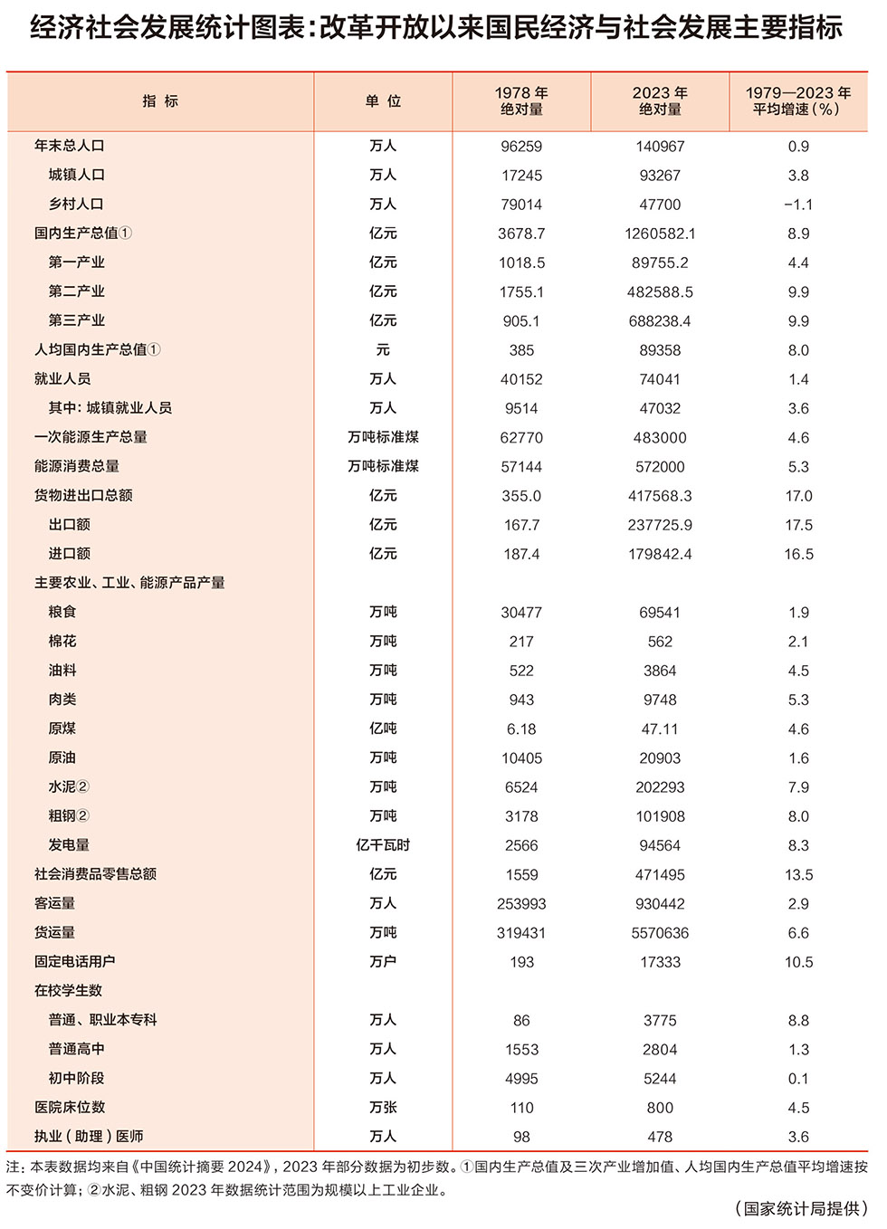 经济社会发展统计图表:改革开放以来国民经济与社会发展主要指标