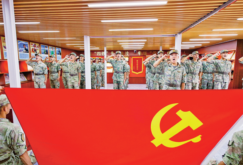 图为2024年7月16日,“模范火箭炮兵连”组织官兵重温入党誓词,引导官兵牢记初心使命,矢志奋斗强军。 庄浩宁/摄