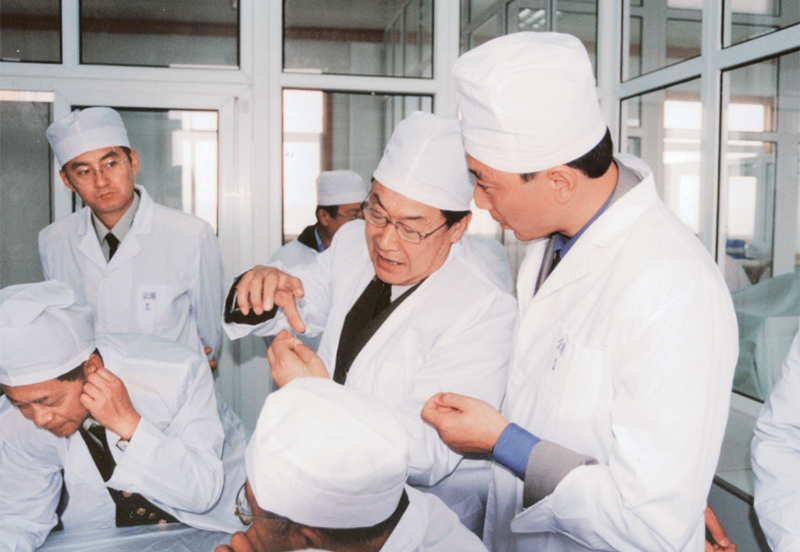 图为王永志(右二)深入载人航天工程研制一线(资料照片)。 新华社发