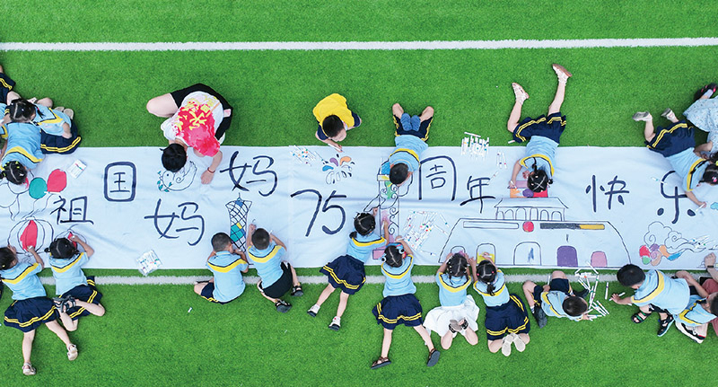 图为2024年9月26日,四川省遂宁市大英县天星幼儿园的孩子们在老师的带领下绘画(无人机照片)。 新华社发 刘昌松/摄
