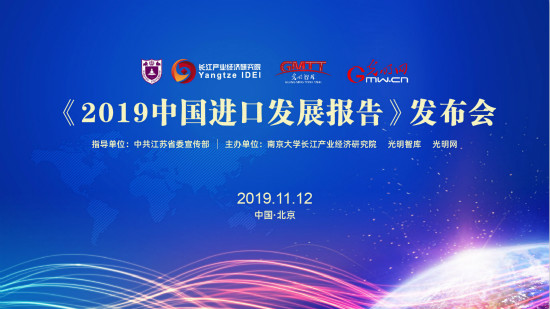 11月12日,在中共江苏省委宣传部指导下,由南京大学长江产业经济研究院、光明日报光明智库、光明网联合主办的《2019中国进口发展报告》发布会在北京举行。作为在进口贸易方面发布的全国首部综合性报告,《中国进口发展报告》(以下简称《报告》)亮点多多、干货满满,为我们全面把握我国进口态势和特点提供了有益参考。