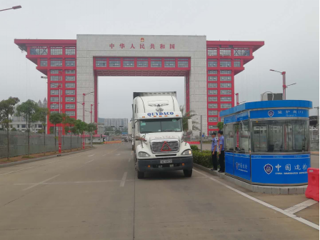 一辆中国货车正在通过东兴口岸北仑河二桥中国边检站 朱师贤/摄