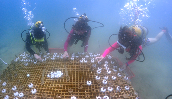 他们通过人工培育的方法种植珊瑚,加快了珊瑚的生长速度。