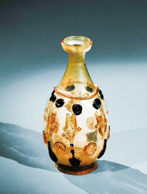 1987年,在中国陕西的法门寺,地宫中出土了20件美轮美奂的琉璃器,这是唐代传入中国的东罗马和伊斯兰的琉璃器。图为法门寺地宫中出土的盘口细颈贴塑淡黄色琉璃瓶。 法门寺博物馆供图(第9期《求是》杂志总书记重要文章里的配图)