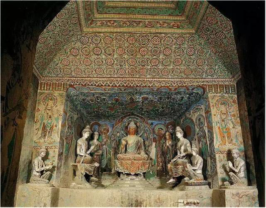 图为莫高窟328窟,受到中国传统殿堂建筑影响。来源:敦煌研究院