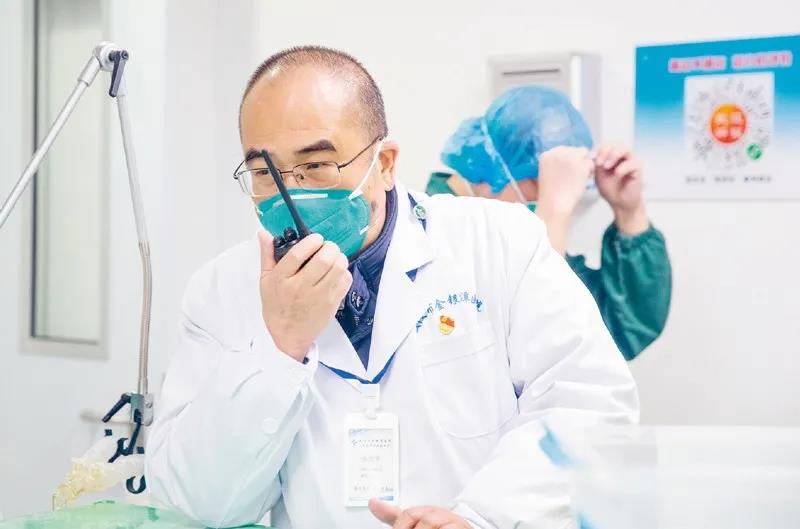 武汉市金武汉市金银潭医院院长张定宇拖着患病的身体,与生命赛跑,让人动容。图为张定宇在联系协调工作。新华社发 柯皓/摄