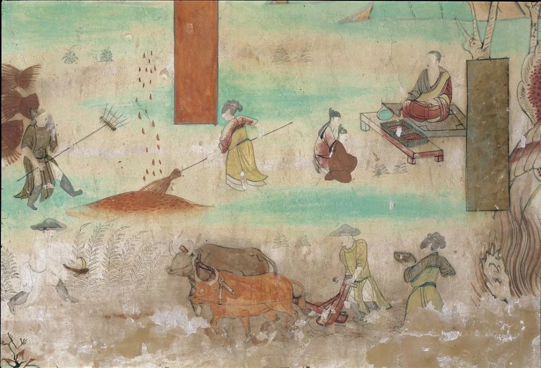 榆林窟第25窟,北壁,弥勒经变之耕种图,中唐。敦煌研究院供图 余生言/摄
