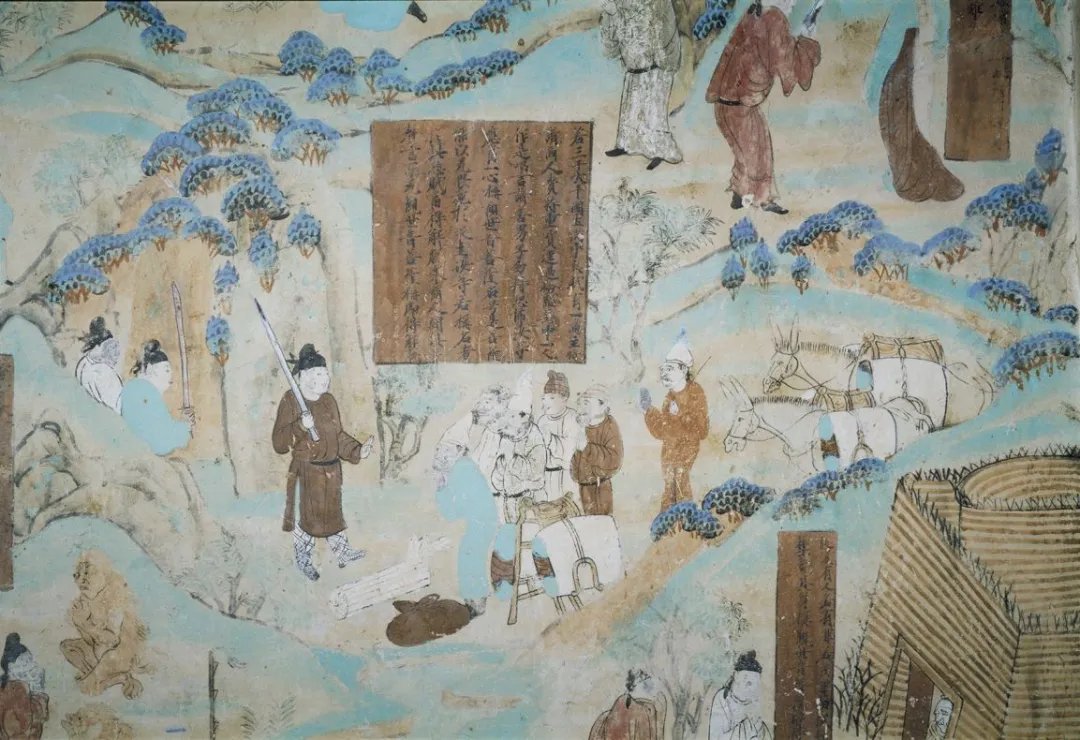 莫高窟第45窟,南壁,观音普问品之胡商遇盗,盛唐。敦煌研究院供图,吴健/摄