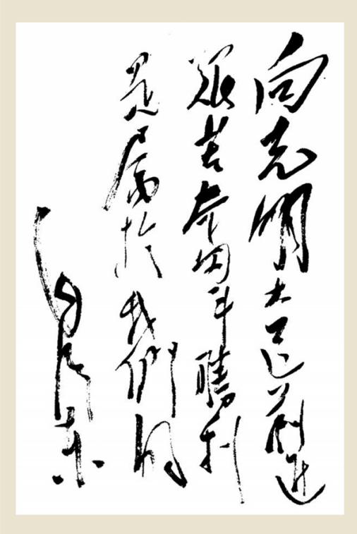 图为毛泽东1939年9月的题词:“向光明大道前进,艰苦奋斗,胜利是属于我们的。”