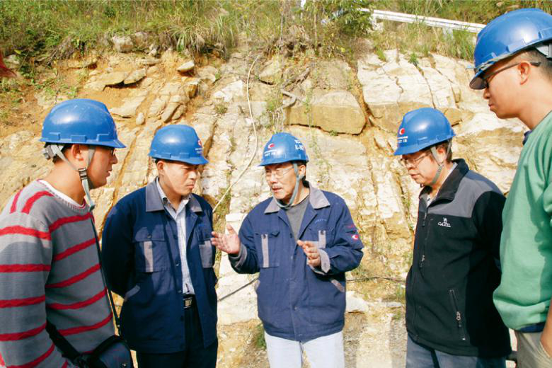 “天眼之父”南仁东长期奋战在中国射电天文学领域,从推动中国参与建造新一代射电望远镜,到力主中国自主建造最大最灵敏的射电望远镜,经过22年艰苦努力,克服重重困难,终于使中国射电天文学睁开了巨型“天眼”,达到世界领先水平。图为南仁东(左三)与工程技术人员在贵州大窝凼施工现场检查施工进展(2014年12月1日摄)。 新华社发