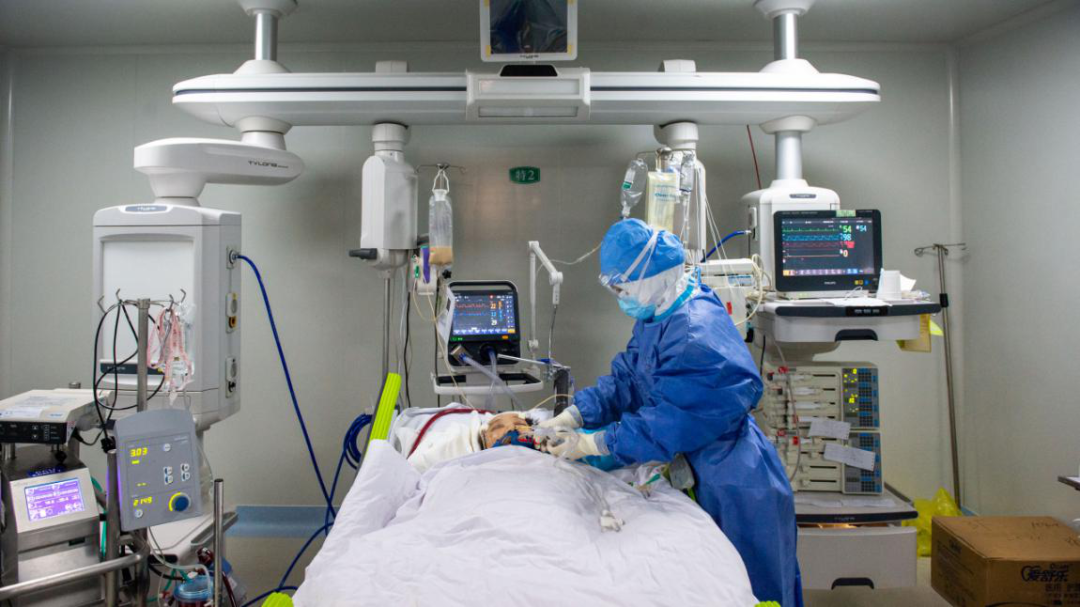 2020年3月2日,武汉市第一医院ICU病房,医护人员使用人工膜肺氧和器(ECMO)抢救新冠肺炎重症患者。湖北日报全媒记者 蔡俊/摄
