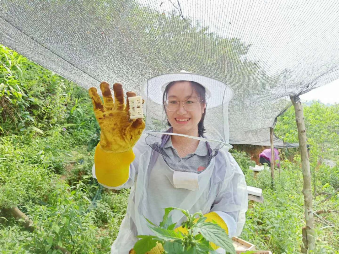 黄文秀到外村考察养蜂产业,计划将养蜂技术引到百坭村(资料照片)。