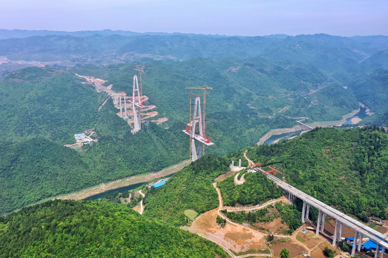 由中铁广州局承建的贵州遵余高速湘江大桥工程在做好疫情防控的同时,全力恢复生产建设。目前工程进展顺利,正在进行主桥钢梁架设,预计将于8月底合龙。据了解,遵余高速湘江大桥桥梁全长1700余米,主跨560米。新华社记者 刘续/摄